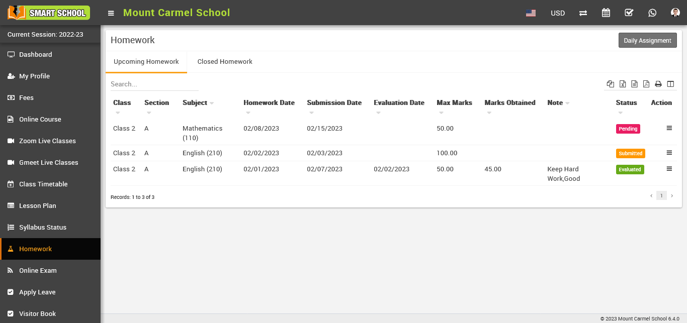 In Upcoming Homework, You can view upcoming homework whose date would be current date and whose submission date is determined by the teacher when he wants to keep the submission date.