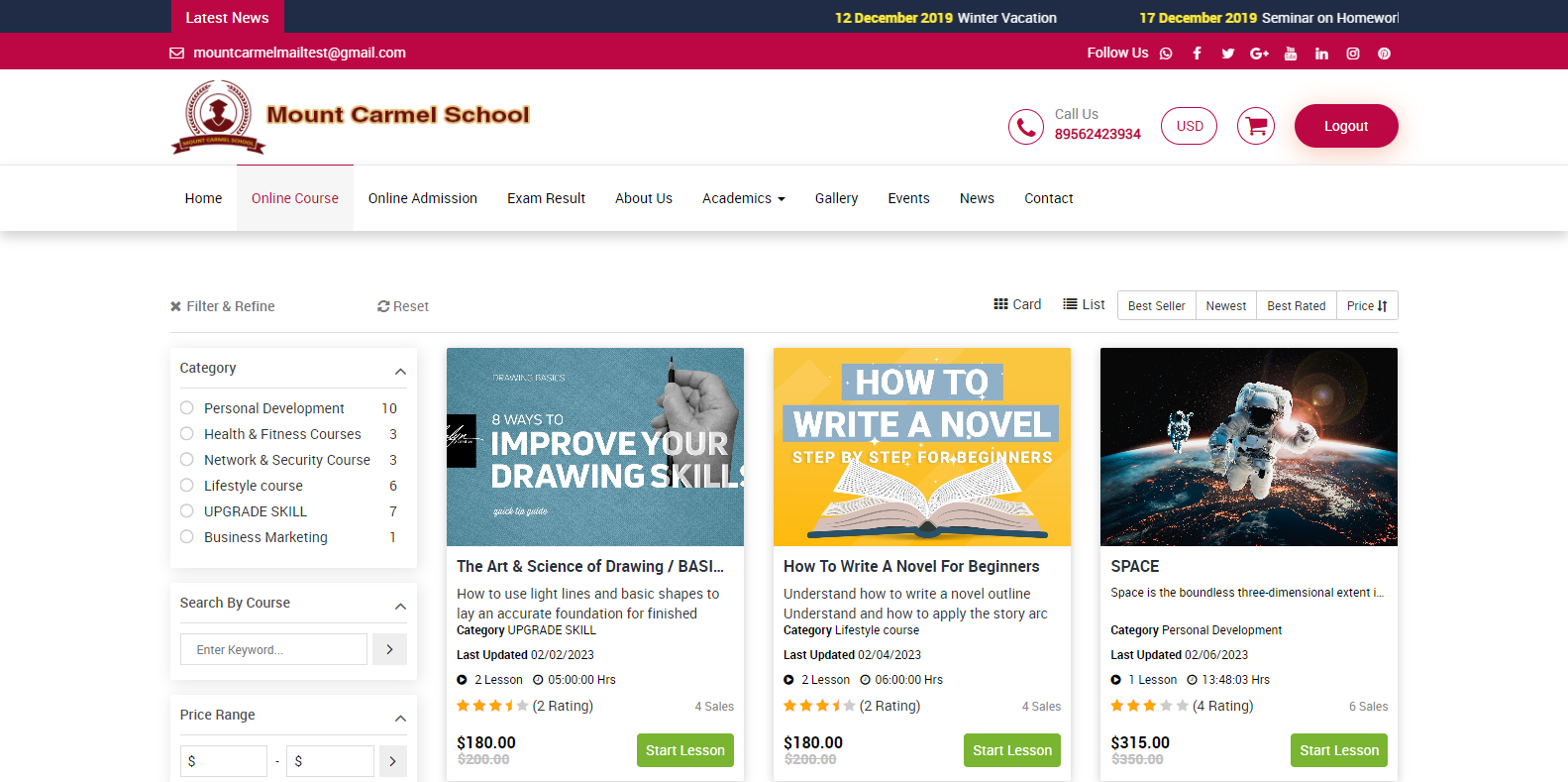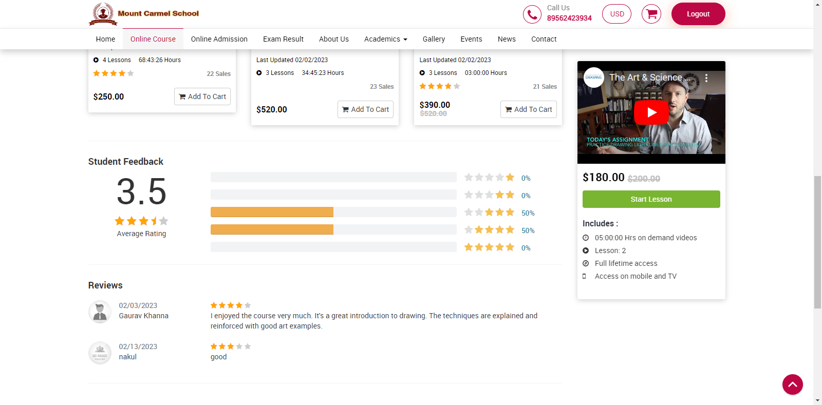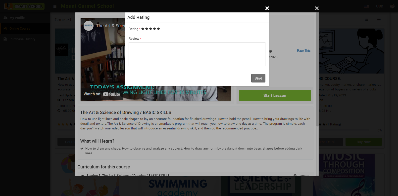 For ratings and review of online course, go to front page of Smart School > online course.