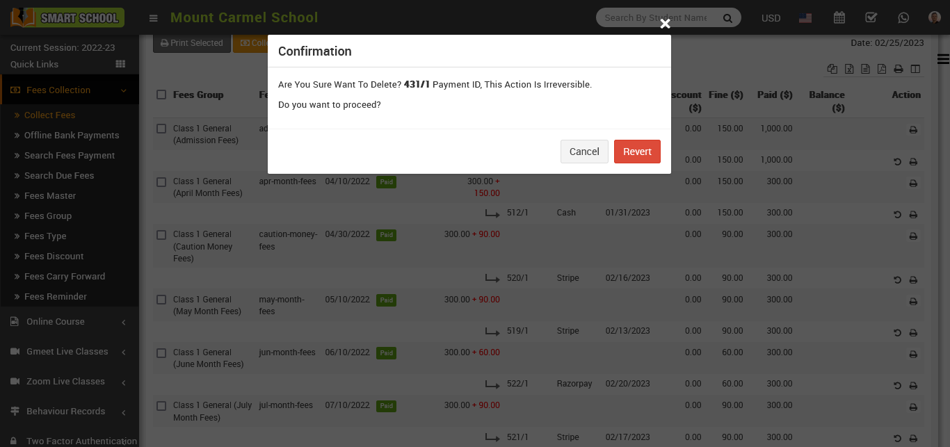 now click on Revert button, so that student fees will be reverted.