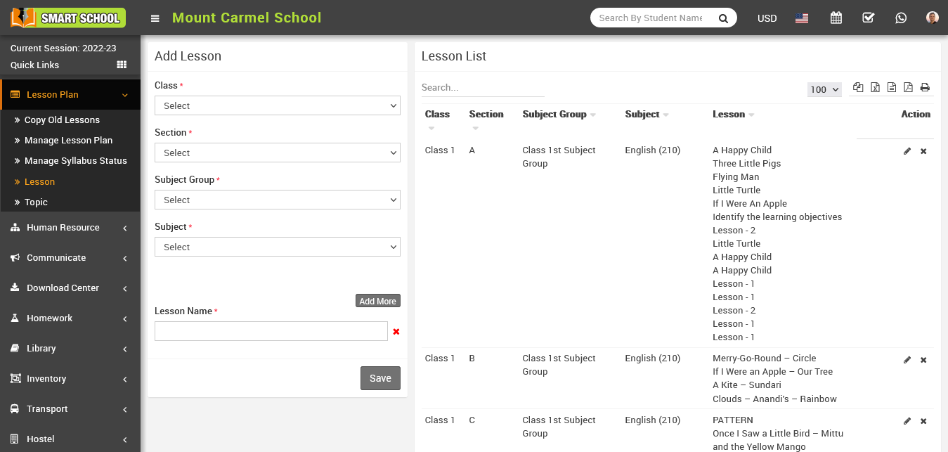 If you have not yet created a Lesson Plan for the current session, you can copy Old Lesson Plan and manage the current lesson plan.
