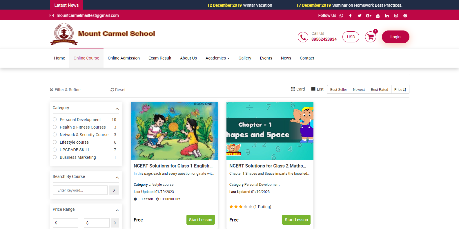 Now in this cart you can see added course and its price as well as you can see sum of total amount of all the courses which you added in the cart.