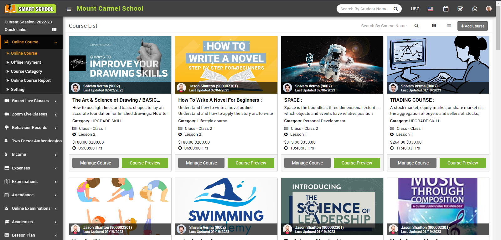 To edit course, click on the Manage Course button, at click of this button Course Detail modal will open, now click on the Edit icon present in the top left corner, at click of this icon an Edit Course modal will open, here update the detail and then click on the Save button present in the top right corner.