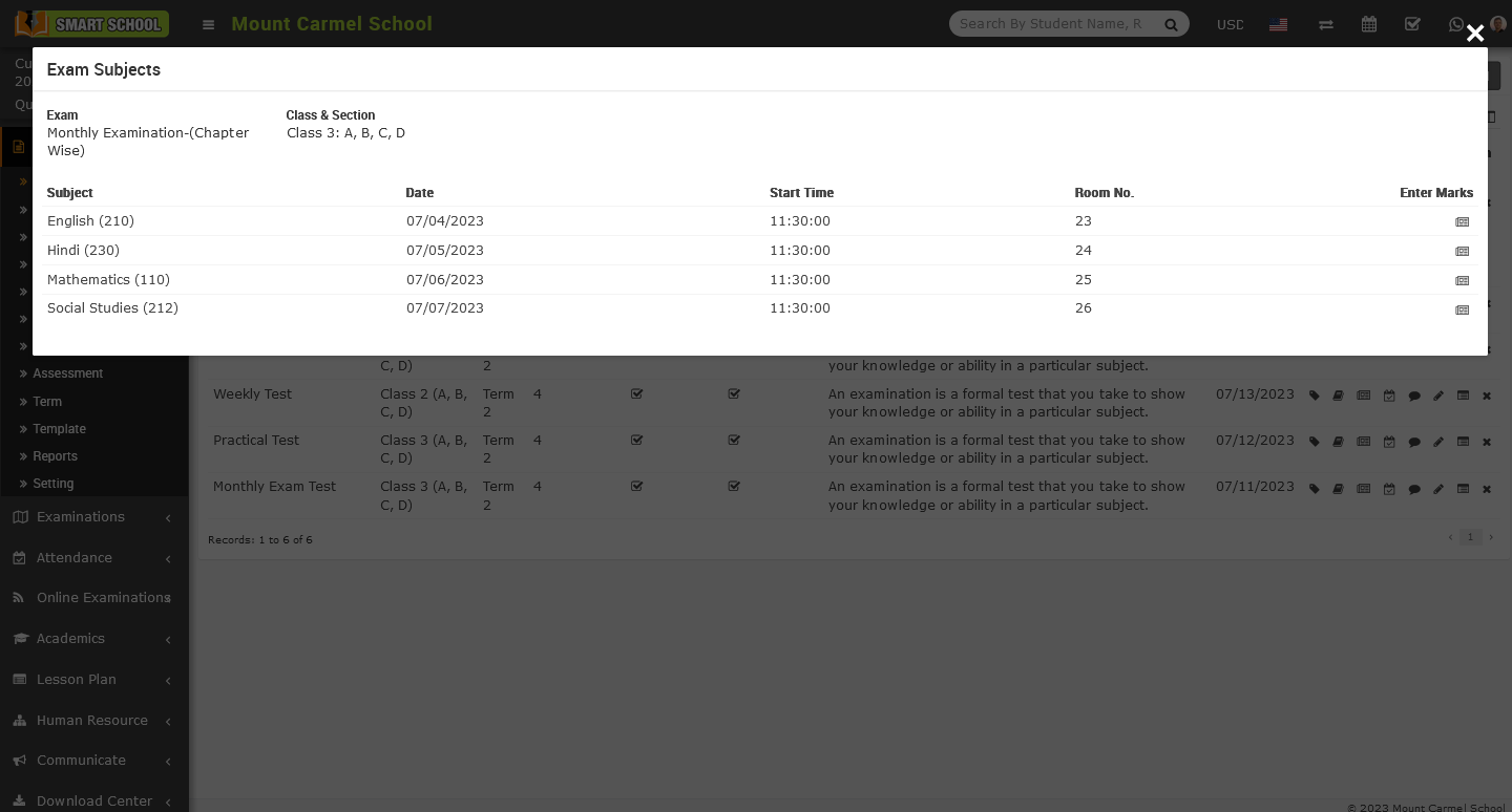 Simply click on the Exam Marks icon, Exam Subject model will be open.