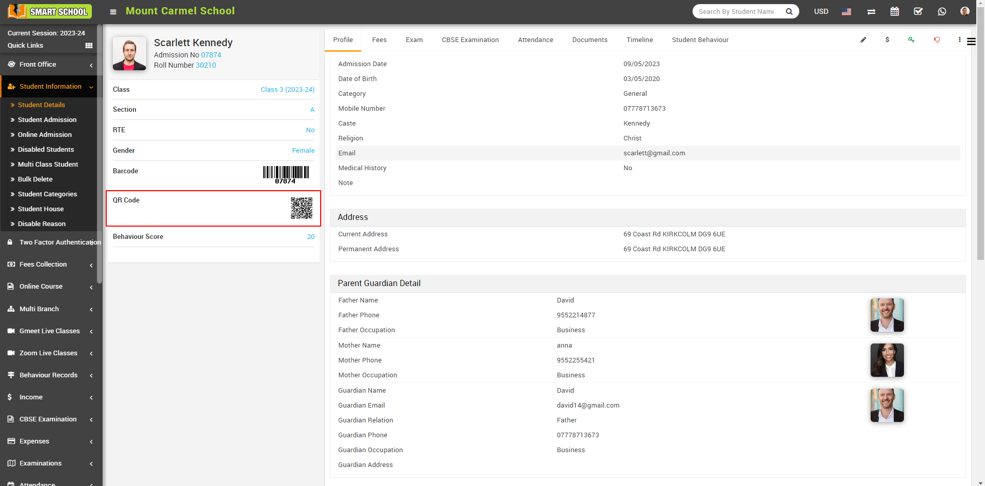 Now you can see the Student QR Code is generated.