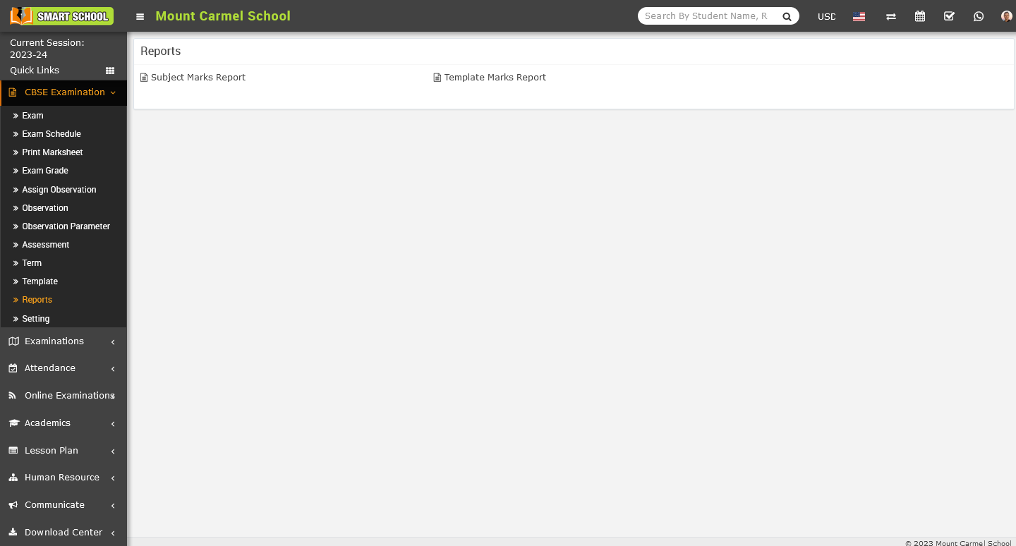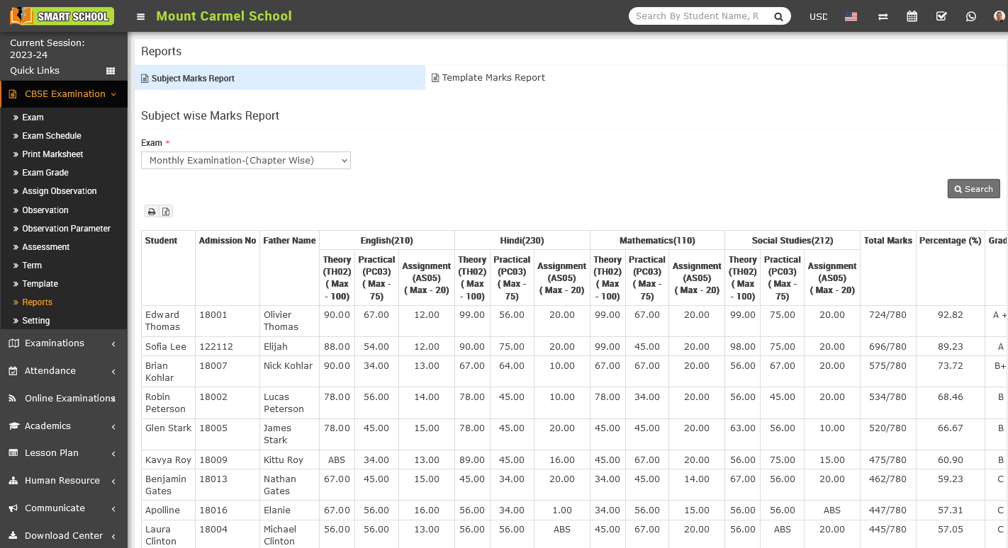 To check the subject marks report, go to the CBSE Examination > Reports. Once you have clicked on the Report, the Report page will appear on the right side.