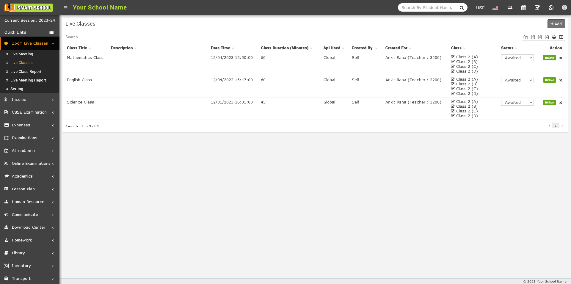 Once you created Zoom Live Class you can see Live Class List according to date(decending) in the Live Classes page.