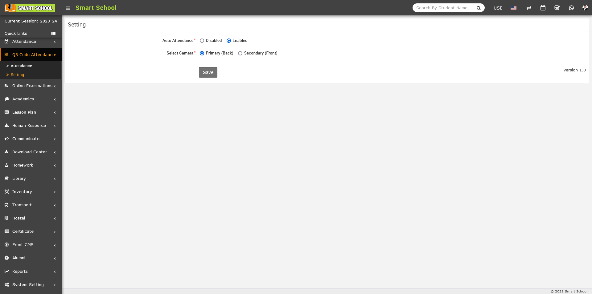 To Enabled the auto attendance, Go to the QR Code Attendance > Setting. When you click on the Setting button, on the right side setting page will be open, here you can see the Auto Attendance Disabled and Enabled option available.