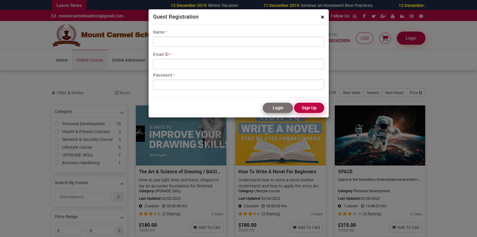 At first, guest needs to register in smart school for online course, click on Sign Up button, signup form will be open.