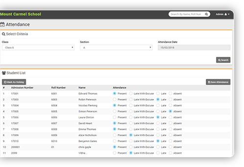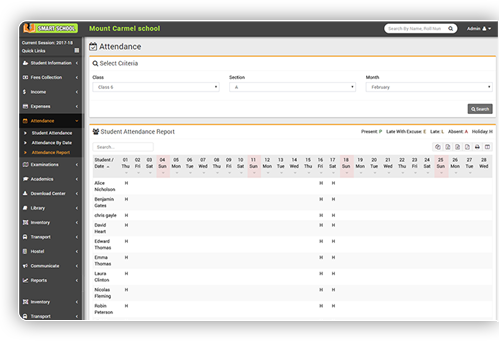 Manage student attendance smartly in few clicks. Get attendance report monthly class-section wise