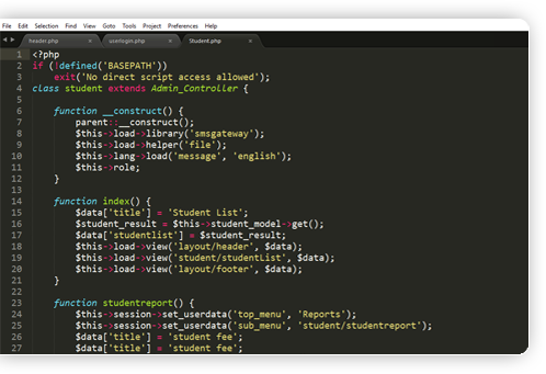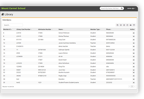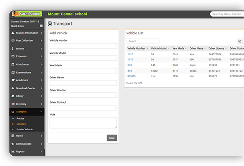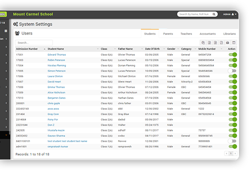 6 User's roles Admin, Accountant, Teacher, Librarian, Parent & Student for their different functionalities