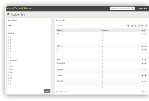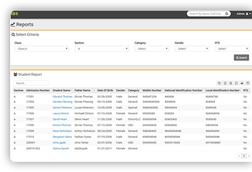 Search by Class-Section or any keyword like student name,admission no, father name, id no etc