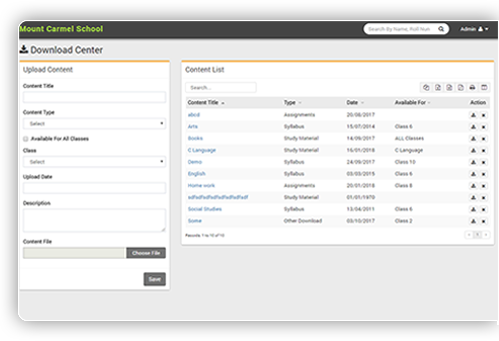 Manage downloadable content for students, teacher like syllabus,assignments, study material etc