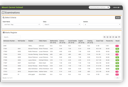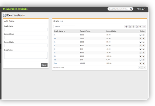 Complete examination management from exam create to exam schedule to marks entry to progress report (2.2.0) with grades