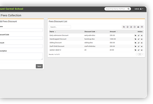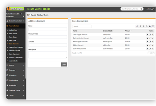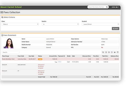 Fees and discount allotment on more than 5 different criteria. Allocate fees on whole class-section or on single student