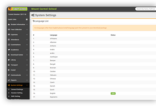 TECHNACY SCHOOL supports 73 languages globally, the only software to support such a huge number of languages present on envato in education category