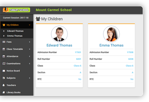 TECHNACY SCHOOL supports to add any no of siblings at time student admission. Parent can check their all children in one parent account