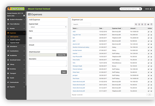 Record school expense like electricity bill, telephone bill, miscellaneous bill etc