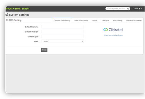 Supports multiple sms gateways including Clickatell, Twilio andcustom sms gateway to integrate any http based sms gateway